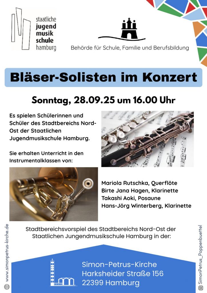Es spielen Schülerinnen und Schüler des Stadtbereichs Nord-Ost der Staatlichen Jugendmusikschule Hamburg.