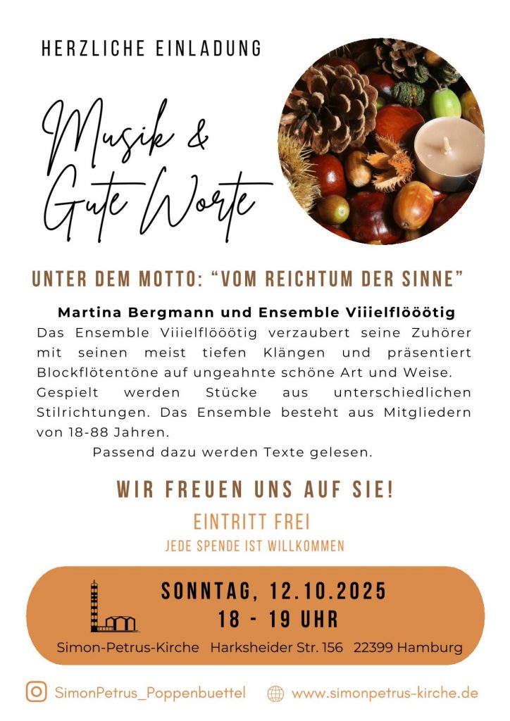 auf der Homepage der Simon-Petrus-Kirche in Hamburg Poppenbüttel. Hier finden Sie viele Information rund um Veranstaltungen, den Freundeskreis und die Kirche selber.